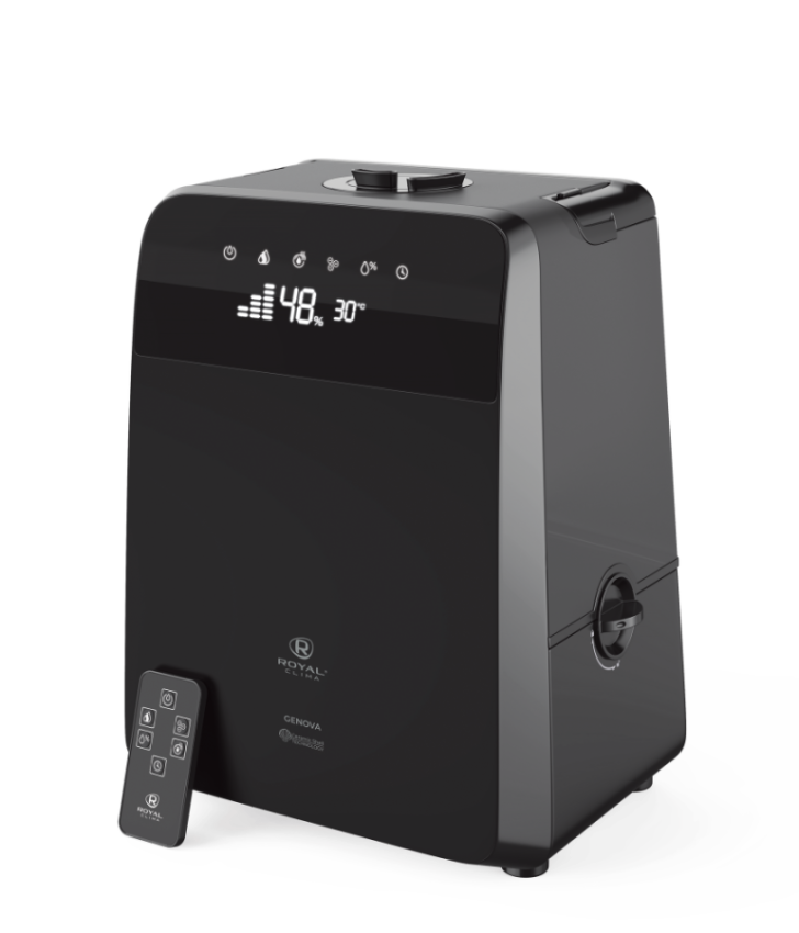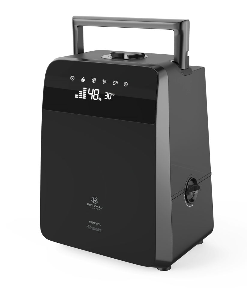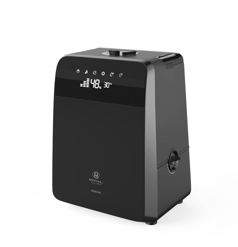 Новая серия бытовых увлажнителей GENOVA (Ге́нуя) от ROYAL CLIMA идеально справится с задачей поддержания правильного микроклимата и необходимого уровня влажности: прибор сам определит текущий уровень влажности и доведёт его до нужного значения исходя из текущей температуры в помещении.Новую серию увлажнителей отличает стильный дизайн и строгие формы. Матовое покрытие «чёрный вельвет» придает внешнему виду прибора особый шарм. GENOVA функционален и удобен в управлении: для более эффективного увлажнения помещения – функция «тёплый пар», ионизатор сделает воздух полезным и оздоравливающим, функция ароматизации и многие другие позволят помочь создать идеальные условия в помещении. Специальный замок не позволит детям снять резервуар для воды и получить доступ к внутренним компонентам прибора. Управлять прибором можно как с помощью сенсорной панели, так пультом ДУ.