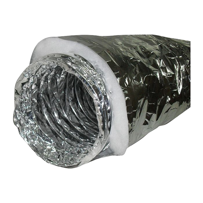 Гибкие тепло- и звукоизолированные воздуховоды с синтепоном. Внутренний воздуховод ZF с микроперфорацией выполнен из алюминиевой фольги, ламинированной полиэфирной лентой, теплоизолирован слоем стекловаты и снабжен защитной оболочкой из металлизированной полиэфирной ленты.